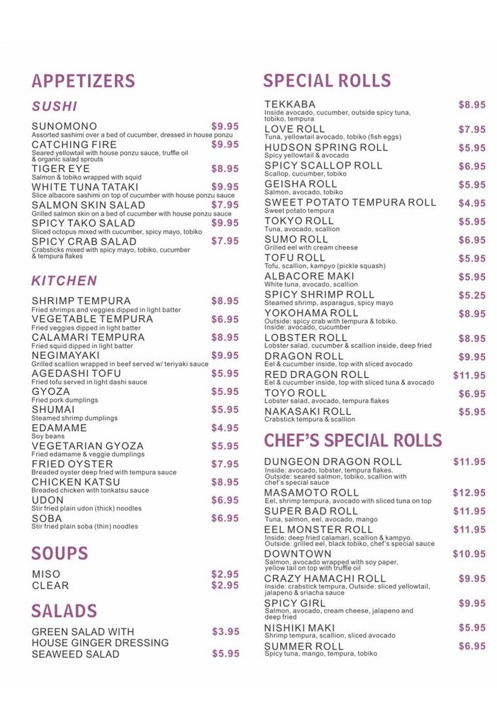 The lunch specials are not only affordable but also tantalizing, featuring choices like Chicken Teriyaki and a satisfying Bento Box. The specialty rolls, such as the Ocean Roll and Spider Roll, exemplify the creativity and freshness that this restaurant is known for: